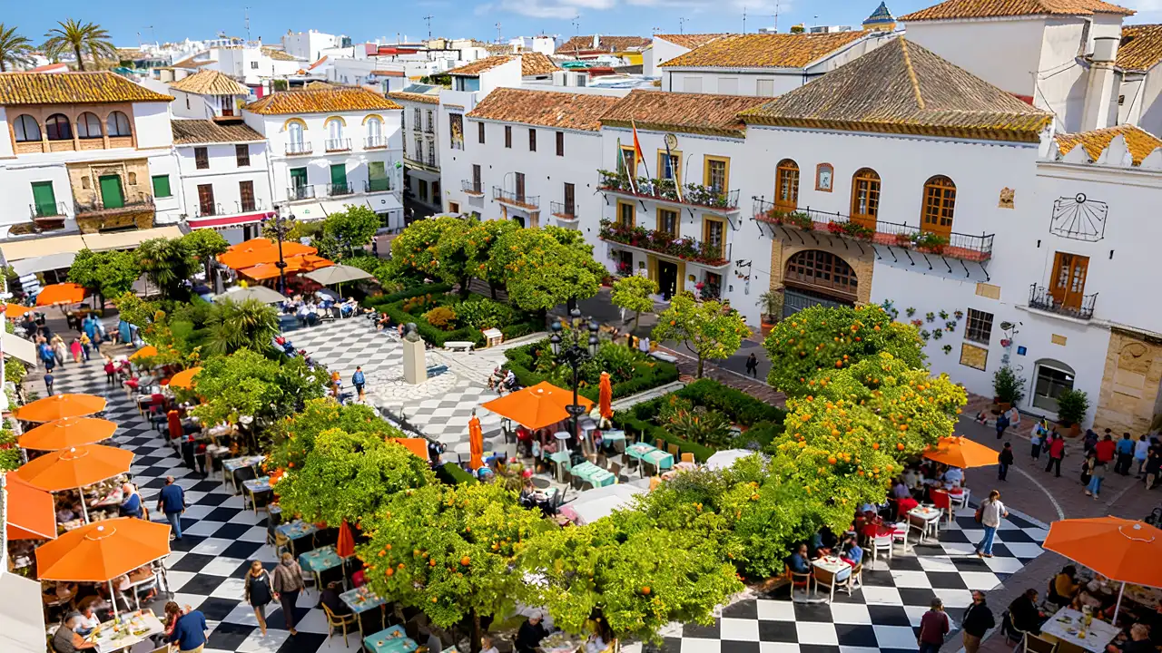 "Plaza de los Naranjos" is distinguished by being home to a wonderful collection of orange trees, for which the Andalusian region is famous, in addition to colorful architectural landmarks, beautiful white houses, and many statues and sculptures that have made it a comprehensive tourist destination.