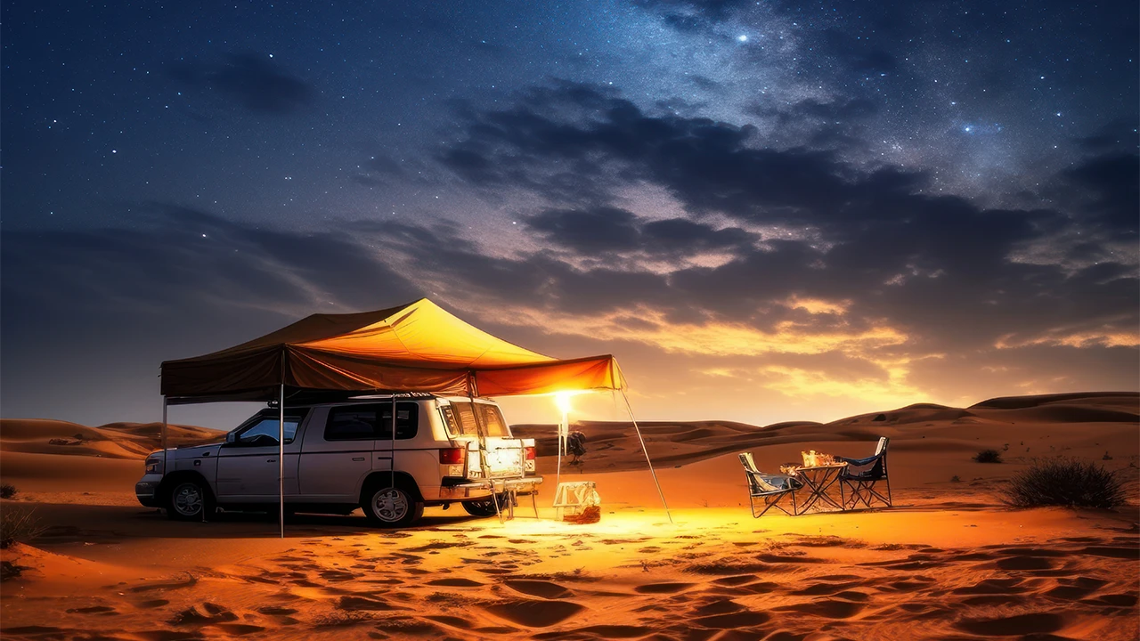 3-التنويه بأنه لا توجد مكيفات أو مبردات هواء أثناء المبيت والتخييم في الصحراء.